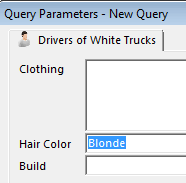 @default value | There will be a prompt for this field value when the query is run. If you specify a default value, there will be no user input required to specify that value (apart from confirming it). For example '@BMW' specifies 'BMW' by default. |